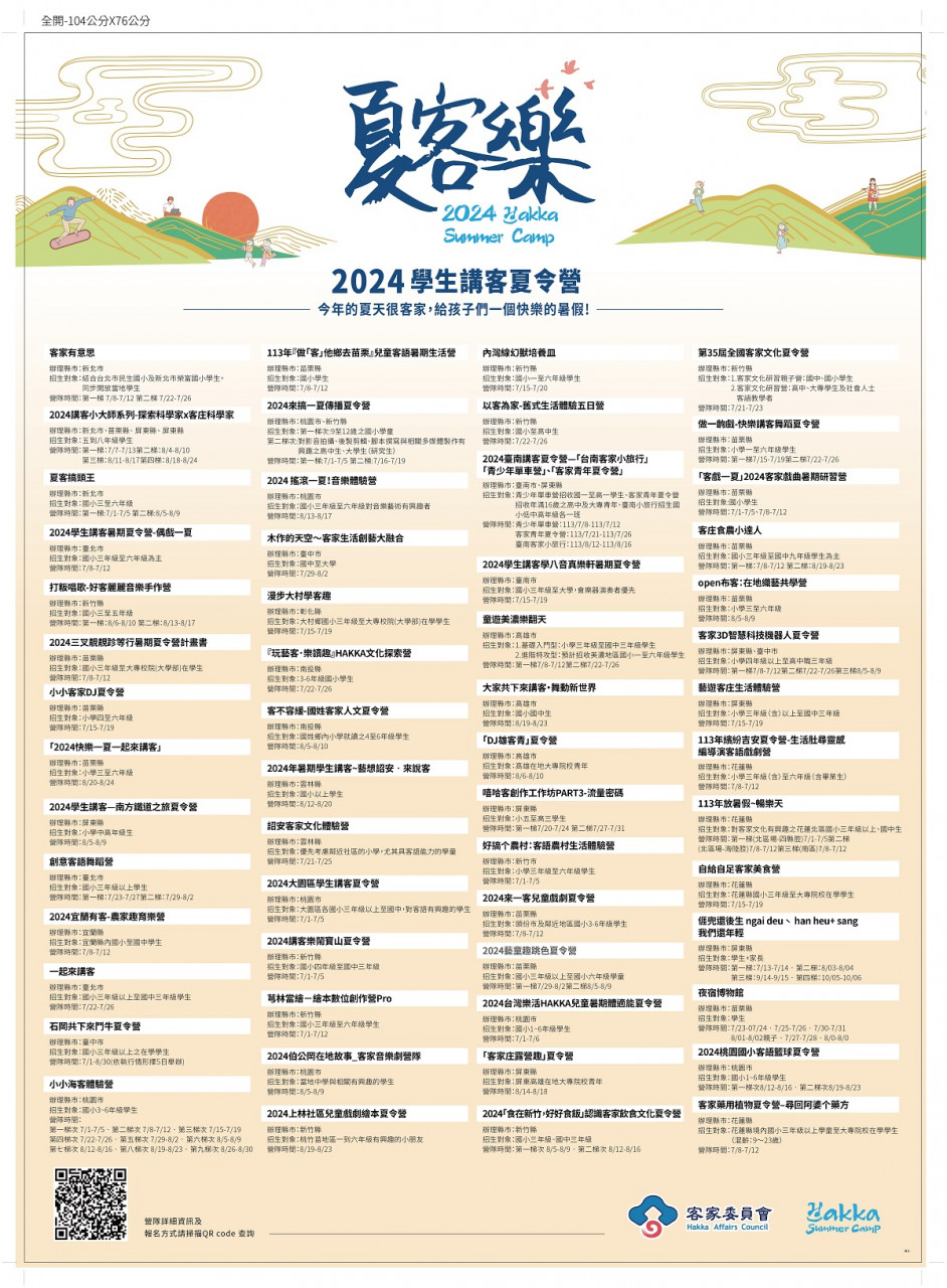 相關活動訊息同步公告於客家委員會官方網站 http ://www.hakka.gov.tw 及 https://hakkasummercamp.hakka.gov.tw/ ,歡迎上網瀏覽。